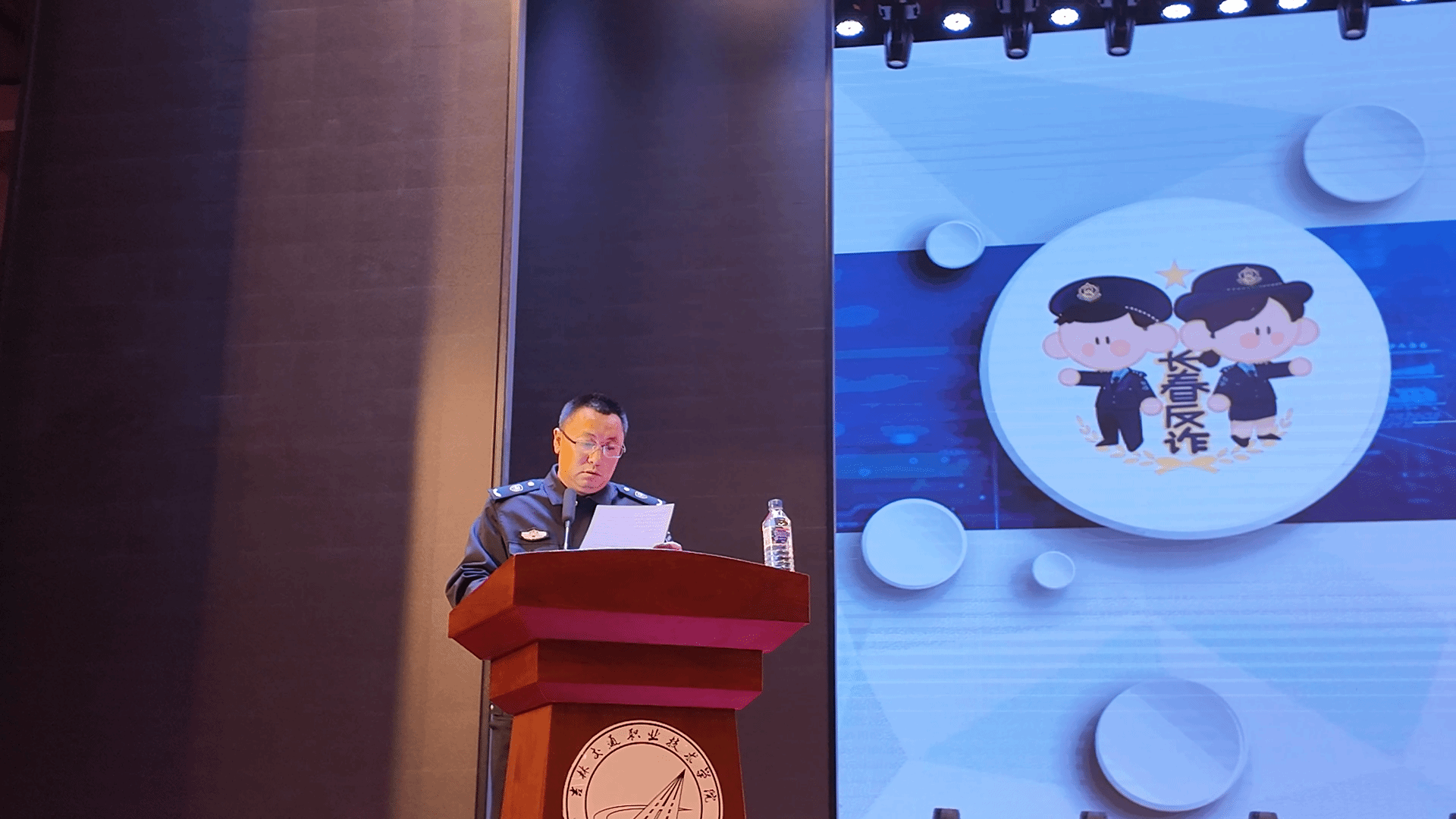 为进一步提高学校师生反诈意识,切实维护师生财产安全。9月12日下午,学校安全保卫处联合学生工作处、宣传统战部、校团委、各学院在大学生活动中心举办“青春守法、警防有诈”反诈主题宣讲。本次宣讲特邀长春市公安局刑侦支队新型犯罪侦察大队一级警长高如月担任主讲,安全保卫处相关负责同志、2025级新生和辅导员代表共800余人现场聆听,讲座由安全保卫处治安科科长杨帅主持。